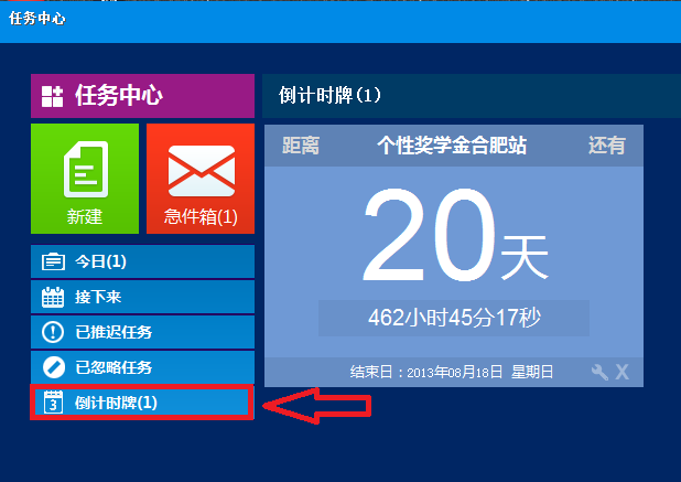 新建好以后在精靈的任務中心點擊可以查看倒計時牌,如下圖: