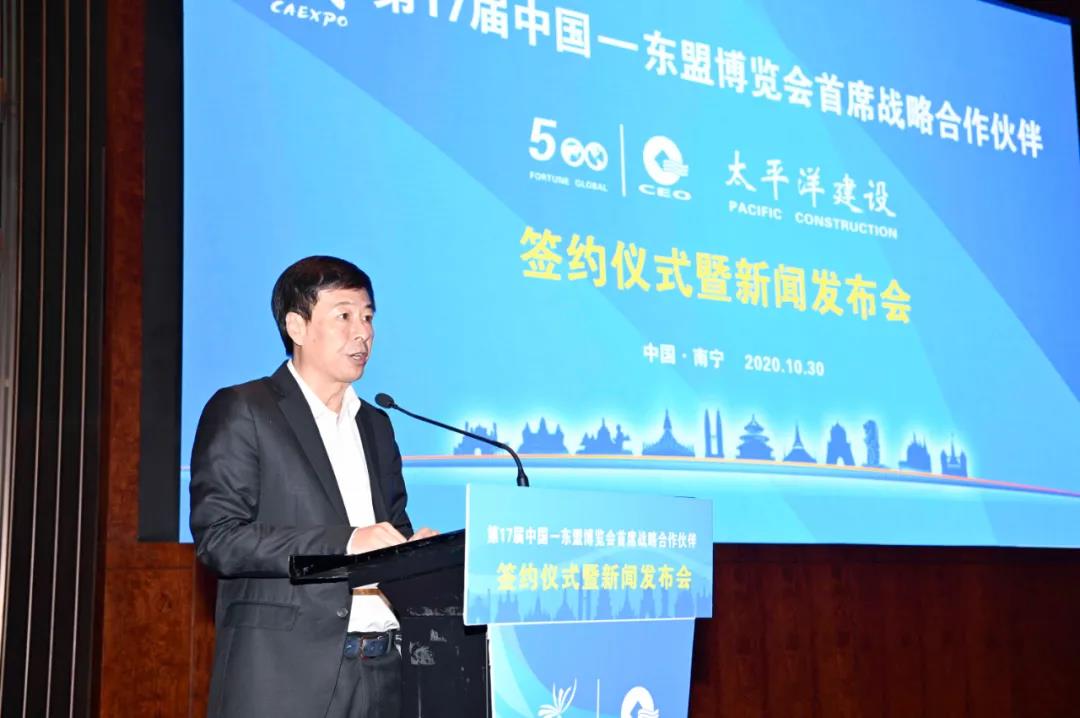 10月30日,第17屆中國-東盟博覽會(huì)首席戰(zhàn)略合作伙伴簽約儀式暨新聞發(fā)布會(huì)在廣西南寧舉行,太平洋建設(shè)連續(xù)第3年攜手東博會(huì),成為第17屆東博會(huì)首席戰(zhàn)略合作伙伴。