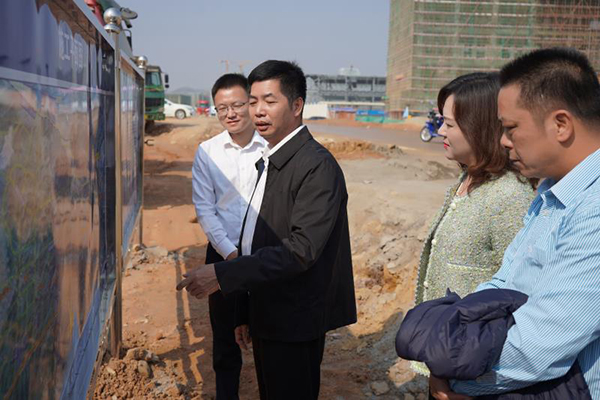 蘇商建設第十一集團總裁李宣美,副總裁張寧,云浮產(chǎn)業(yè)園二期項目經(jīng)理王東興等陪同調(diào)研。(文/圖 蘇商建設第十一集團文品中心)