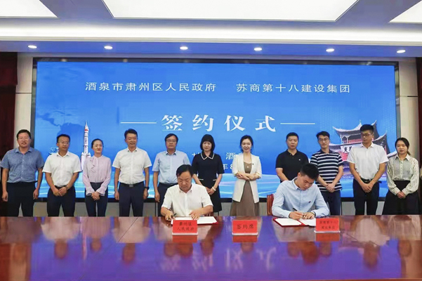 8月25日,蘇商集團與甘肅省酒泉市肅州區(qū)政府戰(zhàn)略合作協(xié)議簽約儀式在酒泉市順利舉行。蘇商建設第十八集團董事局主席張超、肅州區(qū)委書記何正軍出席儀式。蘇商建設第十八集團總裁卞磊,肅州區(qū)副區(qū)長、住房和城鄉(xiāng)建設局局長李成平分別代表雙方簽約。肅州區(qū)委常委、宣傳部部長馬慧君主持簽約儀式。根據(jù)協(xié)議,雙方圍繞肅州區(qū)市政、交通、水利、亮化、綠化等基礎設施建設領域全面深化戰(zhàn)略合作。蘇商集團以不少于50億元的計劃總投資額,積極參與肅州區(qū)基礎設施建設及重點項目建設。
