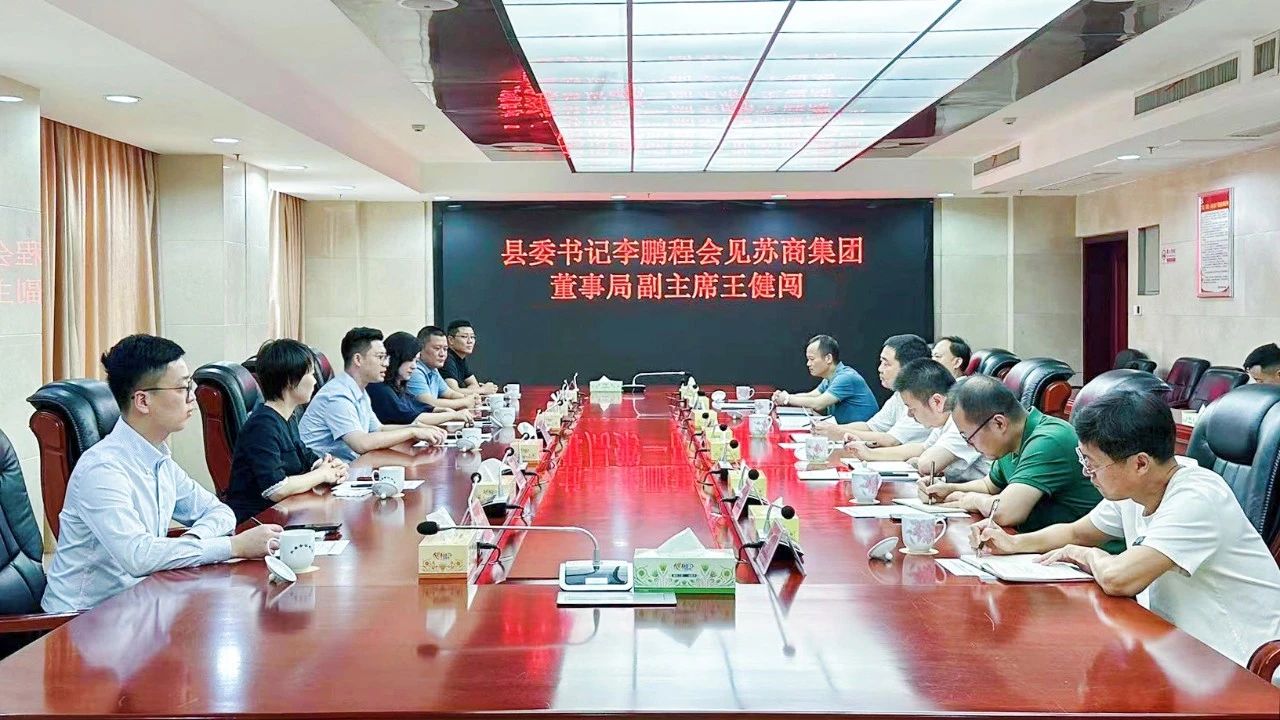 9月5日,蘇商集團董事局副主席王健闖同湖南省株洲市攸縣縣委書記李鵬程會談,雙方就深化合作事宜進行交流。蘇商集團董事、大區(qū)總裁、云帆建設董事局主席左帆出席會談。