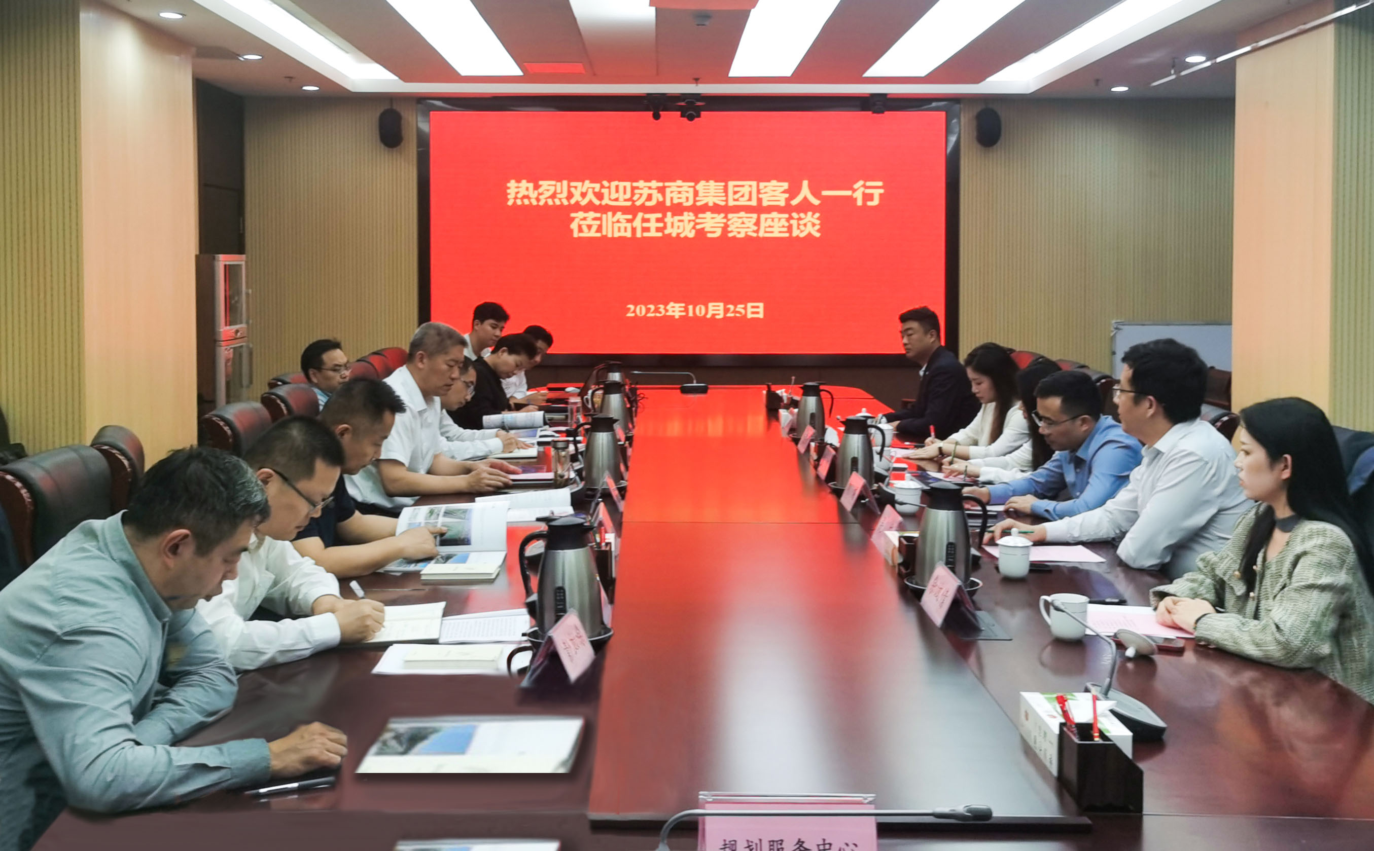 10月25日,蘇商集團董事、CEO俞文在山東省濟寧市同任城區(qū)委副書記、區(qū)長宋華東會談,雙方就基礎設施投資與建設等合作事宜展開交流。蘇商集團董事、棲梧建設董事局主席劉闖參加會談。